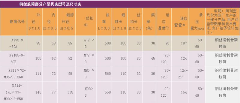 我廠(chǎng)研制的專(zhuān)利產(chǎn)品“鋼絲膠筒”,在油田小套管變形井、高溫井中試驗(yàn),耐溫90~120℃,承壓50~60Mpa,取得了明顯的效果,并獲“具有鋼絲繩骨架的油井封隔器膠筒”國(guó)家專(zhuān)利。